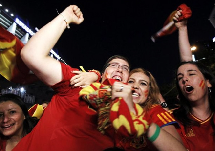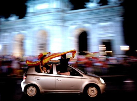 Selv de uddelegerede betjente havde svært ved at skjule glæden over den tredje, store spanske landsholdstriumf på stribe. Politibilerne blev dekoreret med flag og der blev set gennem fingre med adskillige ”småforseelser”, som på et trist regnvejrsdag nok ville være blev fulgt op af en lille hilsen fra ordensmagt