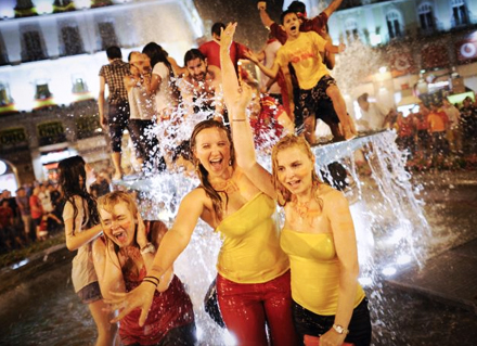 Traditionen tro blev det også til en dukkert i springvandet, hvor folk i alle aldre udnyttede muligheden for at blive frisket lidt op i det mudrede vand, mens farvestrålende raketter dekorerede den sorte aftenhimmel.