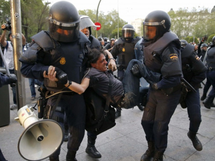 Urobetjente slog i går hårdt ned på demonstranter i forbindelse med ”belejringen” af Kongressen i Madrid, hvor tusindvis af borgere samledes omkring regeringens hovedkvarter for at protestere mod alt lige fra masse-tvangsauktioner og arbejdsløshed til regeringens finanspolitiske nedskæringer og korruption.