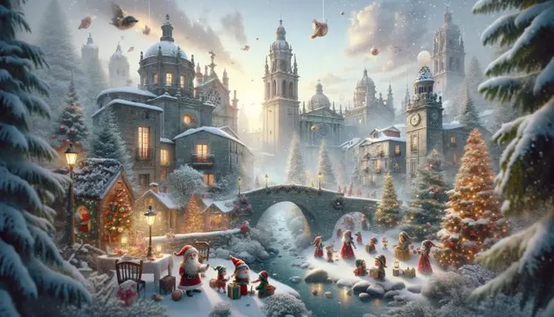 ChatGP’Ts kunstige intelligens - I, kendt som DALL-E - har skabt denne version af, hvordan Vigo, Pontevedra, Ourense, Lugo, A Coruña og Santiago de Compostela ville se ud, hvis de var et rigtigt julerige. De mest symbolske og besøgte steder optræder i et snedækket landskab og med typiske elementer fra juleforestillingerne, som rensdyr, nisser, engle eller julemanden.