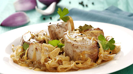 Tilsæt løg, skåret i tynde strimler, og lad den simre tildækket over svag varme. Når løget er gennemsigtigt, tilsættes tun, vin, hakket persille og laurbærblade. Dæk gryden til igen og lad det hele simre over svag varme i 20 minutter, smag til med salt.
