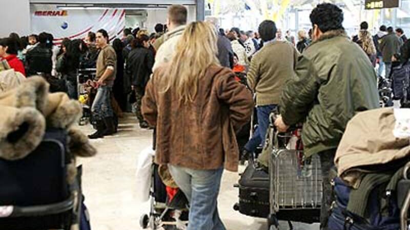 Det spanske luftfartsvæsen opfordrer de passagerer, som har været ramt af aflysninger, at blive hjemme og holde sig opdateret om situationen på flyselskabernes hjemmesider.