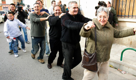 Men én mand fik ikke købt en lodseddel, da en gruppe hjemmegående husmødre i foreningen 'Amas de Casa' var gået rundt fra dør til dør for at sælge lotterisedler til fem euro stykket.