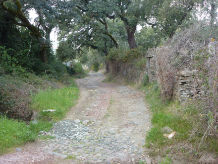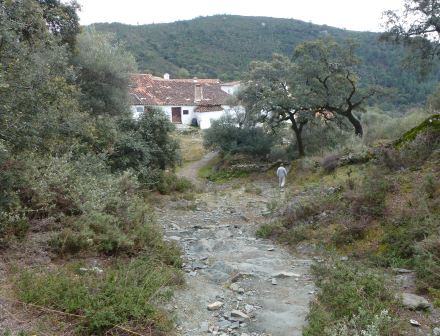 Også fra Almonaster udgår der en fin vandretur, som går i vestlig retning ud af byen. Man følger først vej A470 et stykke, indtil en sti dukker op på venstre hånd. På et skilt står der ”fin de sendero”, og selv om det betyder, ”stien ender her”, er det faktisk præcis her, stien starter. Det er en meget smuk sti ind imellem flere dehesas.