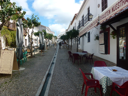 Man kan parkere ved indkørslen til byen og så gå igennem de charmerende smalle gader med appelsintræer, hen forbi kirken, krydse den centrale plads og videre op til den gamle arabiske borg, som også rummer moskéen. Oppe fra borgen er der en fin udsigt – ja, man kan næste se helt til Portugal.