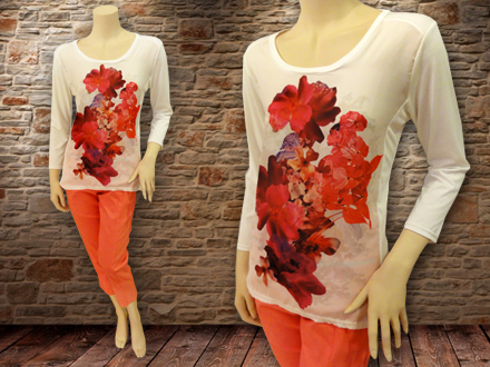 Blomstret top. Før 69 euro - nu: 34,50 euro