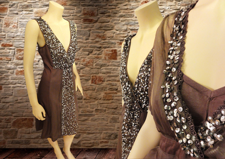 Brun kjole med pailletter. Før 179 euro - nu: 89,50 euro