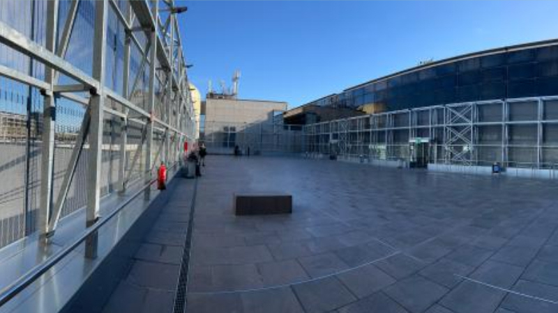 Det er det første udendørs område i boardingområdet i T2-terminalen ved siden af S-gates.