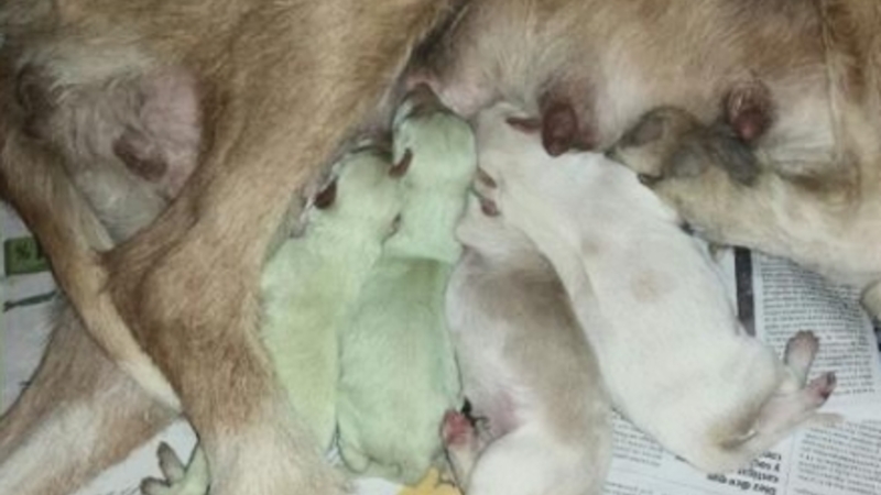 Grøn af misundelse kender vi, men kan man også være grøn af “nuttethed”? Åbenbart. Ejerne af et kuld nyfødte jagthunde troede ikke deres egne øjne, da det viste sig, at to af de nyfødte basser var grønne.