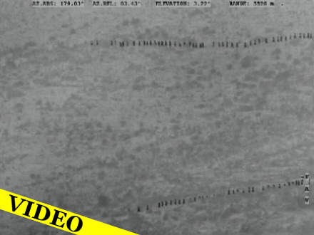 Denne gang har Guardia Civils helikopter brugt infrarødt lys til at afsløre to lange rækker immigranter, der går i nattens mulm og mørke for at komme frem til den svært bevogtede grænseovergang.