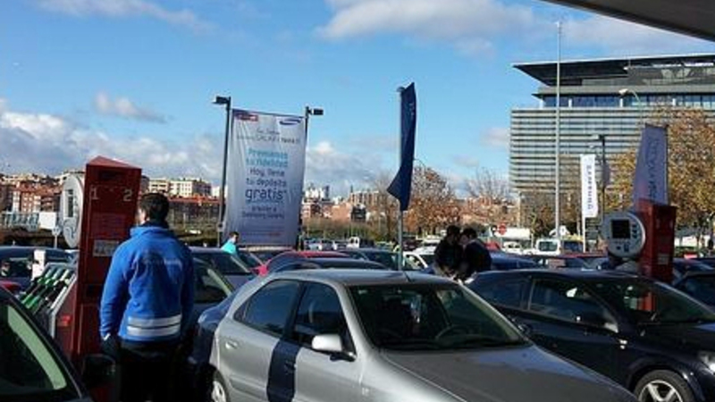 En reklame om gratis benzin fra et teleselskab fik tirsdag en tankstation ved Campo de Naciones i Madrid på randen af et totalt kollaps.