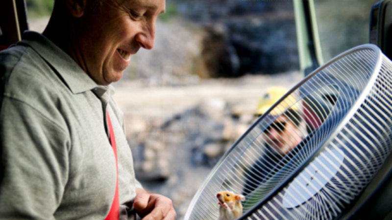 Hamster blev sat til at køre en kæmpe lastbil gennem et stenbrud. Turen blev noget slingrende på den snoede bjergvej, men den lille gnaver kunne heller ikke se ud af forruden. Jo, den er god nok!