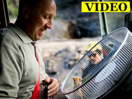 Filmen 'The Hamster Stunt' viser den lille hamster Charlie på 175 gram, der styrer den 15 ton tunge lastbil ud fra et stenbrud i Ourense.