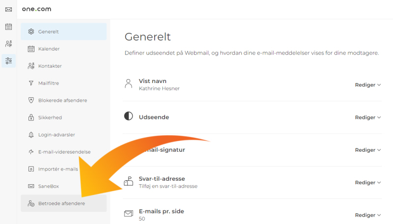 Klik herefter på Betroede afsendere: