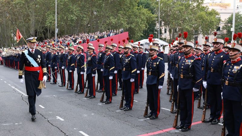Kongeparret Felipe VI og Letizia ledede søndag den 12. oktober hovedbegivenheden på Nationaldagen sammen med deres døtre, prinsesse Leonor og infanta Sofía. Som hvert år var Madrid vært for den traditionelle militærparade, hvor næsten 4.000 personer fra de Væbnede Styrker, Guardia Civil og Policia Nacional deltog.