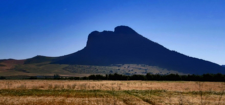 Det er alt sammen uhyre interessant, og mens man går rundt på dysse-området kan man ikke lade være med at lade sit blik indfange af den vældige klippeformation, der ligger mod øst: La Peña. Denne klippe ligner grangiveligt profilen af en mand, der ligger ned.