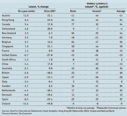 Undersøgelsen, der er foretaget af The Economist, nævner USA, Spanien og Irland, som eksempler på ”over-opskruede priser” og kalder den negative vækst på ejendomsmarkedet for ”nødvendig og uundgåelig”, for at priserne kan vende tilbage et ”fornuftigt leje”.