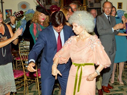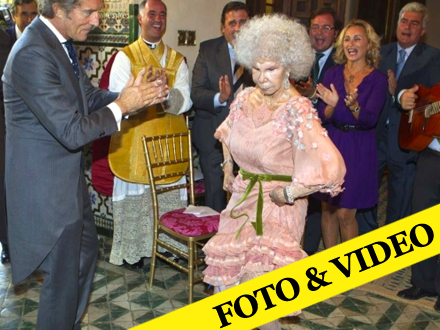 Helt i ånd med hertugindens farverige personlighed smed den nygifte brud skoene og tog et par sevillanas-dansetrin til stor begejstring for de fremmødte.