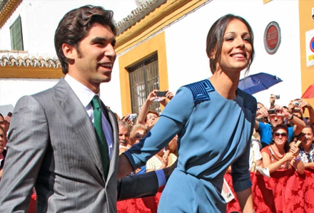 Tyrefægter Cayetano Rivera og hans kæreste, modellen Eva González, ankommer til brylluppet