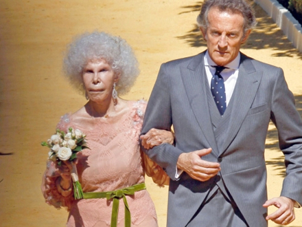 Så fik hertuginden sin tjenestemand - eller var det omvendt? Den 85-årige Hertuginde af Alba, Cayetana Fitz-James Stuart y Silva, giftede sig i går med den 61-årige Alfonso Díez. Og de fremmødte nysgerrige blev ikke snydt for lidt underholdning.