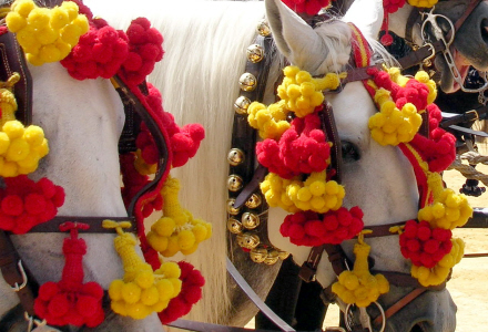 De andalusiske og arabiske fuldblodsheste, der er spændt for vognene, er i sig selv et betagende syn. De prægtige dyr er alle udsmykkede med klokker, bjælder og farvestrålende bånd. Dertil kommer det striglede hår og de skindende manker, der giver reflekser i sollyset.