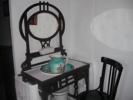 I et af de andre rum bliver man mindet om, at det der med et hurtigt brusebad ikke altid har været alle forundt. Et vandfad og en kande - så var dagens bad overstået.