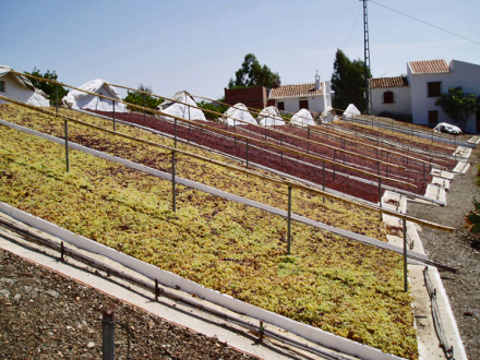 I et tilstødende lokale er væggene dekoreret med sort-hvide fotos, der gengiver forløbet fra plukning af druerne til tørringen, fjernelse af stilkene og kassering af rådne rosiner - alt sammen ved håndkraft.