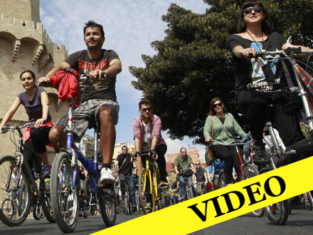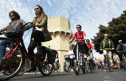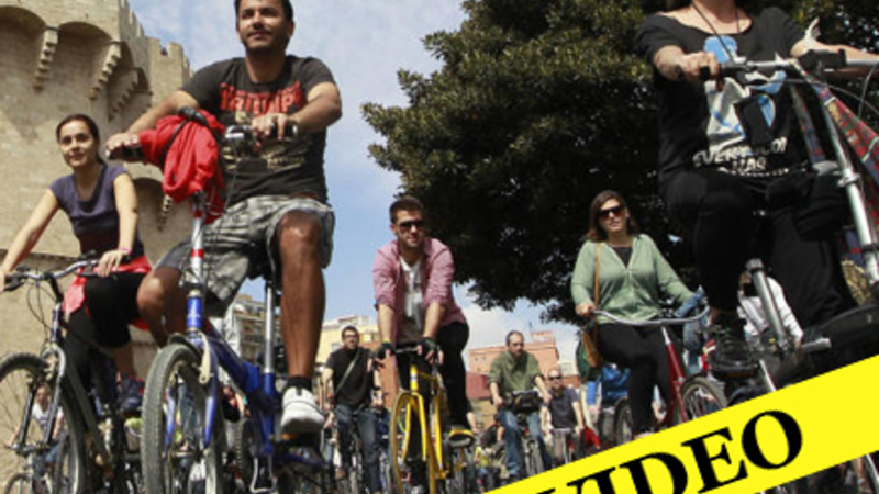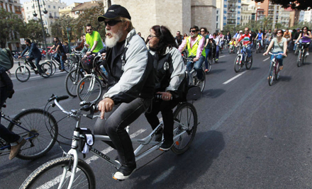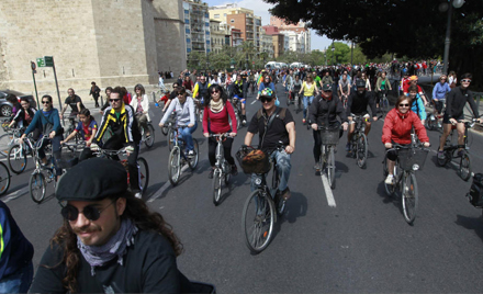 Mere end et tusind cyklister i Valencia aktionerede søndag i protest mod regeringens lovforslag, der vil gøre det obligatorisk at bruge cykelhjelm - også i bycentrum.