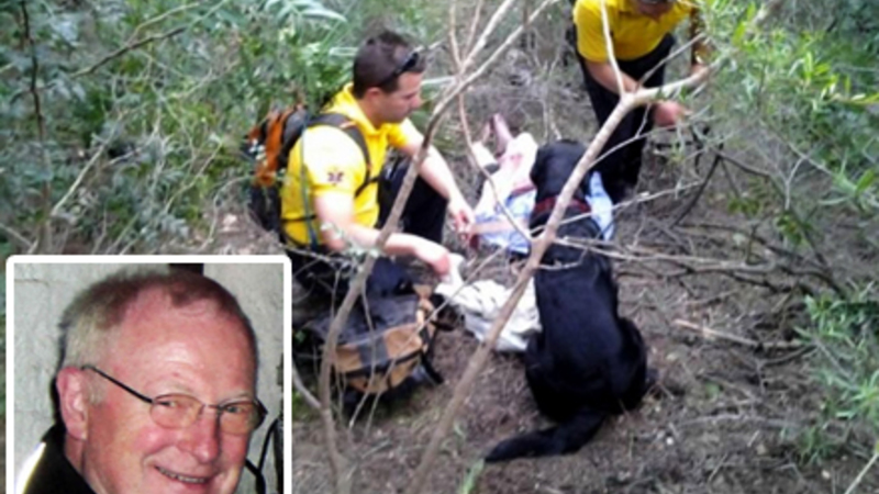 Politiet fandt Bernhard efter en omfattende eftersøgning området med trænede hunde, hvoraf den ene - Bobby – med held også var med til at finde overlevende efter jordskælvet i Haiti i 2010.