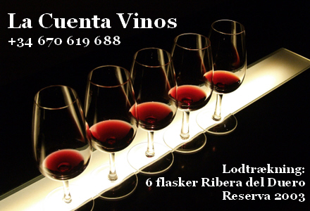 For at skabe lidt spænding, trækker vi den 1. februar 2011 lod om seks flasker Ribera del Duero Reserva 2003 fra La Cuenta Vinos blandt de indkomne svar inden denne dato. Skulle du vinde, skal du være indstillet på, at vi skal offentliggøre dit navn.