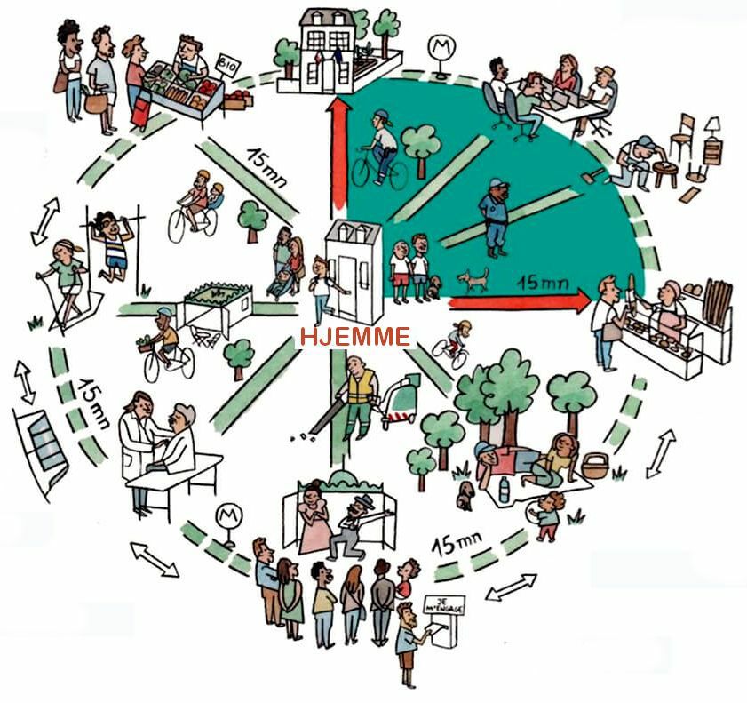 En 15-minutters by er en by, hvor indbyggerne kan udføre alle deres personlige, arbejds- og fritidsaktiviteter og få adgang til alle de tjenester, de har brug for, inden for 15 minutter.