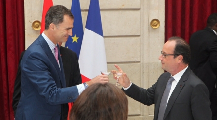 Kong Felipe og Frankrigs præsident skåler