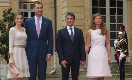 Felipe og Letizia blev modtaget af forskellige ambassadører i byernes by, hvorefter de blev kørt til Præsidentens palads. Efter et møde med Francois Hollande deltog Kongeparret i en æresmiddag.