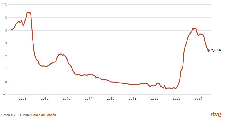Den ledende boligrente Euribor sluttede i december med 2,43 procent - et fald fra 2,5 procent i november og fra 3,6 procent i december sidste år.