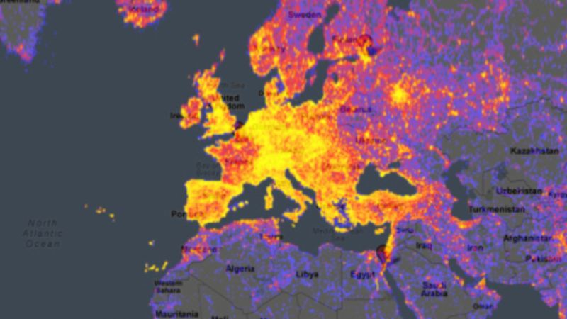 Kortet lyser op, der hvor der er taget flest billeder, og det giver et indtryk af, hvor i verden der er mest 'turistet'. Gult markerer altså, hvor der er taget flest billeder, rødt er medium turistet, ved blå farve er der kun taget ganske få billeder, og når det er helt gråt, betyder det, at der ikke er oploadet et eneste billede fra stedet. Der er både taget hensyn til antal billeder, og hvor mange forskellige brugere, der har delt billeder fra de forskellige steder.