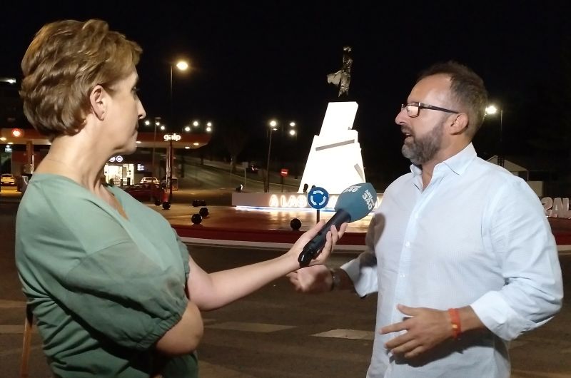 Nicolas Cruz, der er byrådsmedlem med ansvar for kommunens offentlige veje, og derved hovedansvarlig for statuens opførelse, interviewes af Mijas Comunicación