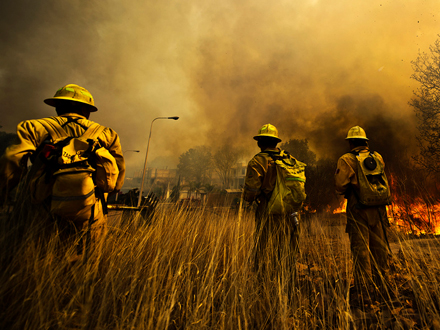 11 medlemmer af en frivillig brandslukningsenhed omkom i flammerne og der skete enorme skader.