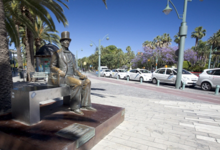 Vi var i Málaga den 24. april 2012 og her satte vi os på bænken ved siden af H.C. Andersen. Han udtalte sig begejstret om byen: