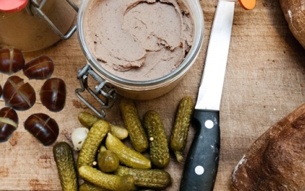 Kyllingelevermouse med ristede kastanjer (spansk: higado de pollo)