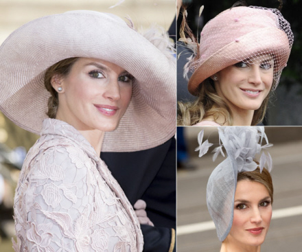 Selv om det ikke er det mest almindelige, er kronprinsessen også set med store hatte, der matcher en given lejlighed, oftest når hun har været sammen med Dronning Sofia. Den lyserøde pamela, som hun bar til brylluppet mellem William og Stephanie af Luxembourg, er designet af Paul fra Valladolid og Mayaya.