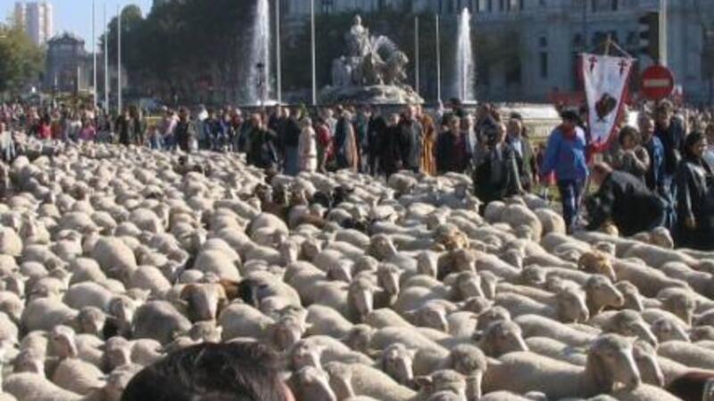 Turister i Madrid troede ikke deres egne øjne, da de i går fik øje på flere hundrede får, fire oksespand, 12 hyrder og en flok køer, som trampede gennem Madrids centrum. Men det var bare den årlige ”Fiesta de la Transhumancia”.