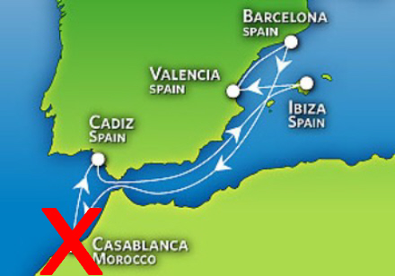 Efter at blive nægtet adgang til Casablanca, måtte MS Nieuw Amsterdam sætte kurs mod Malagá