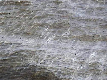Havet er farvet helt grønt af udslippet på bunden