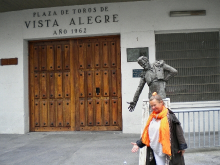 Herdis leger tyrefægter foran arenaen i Bilbao