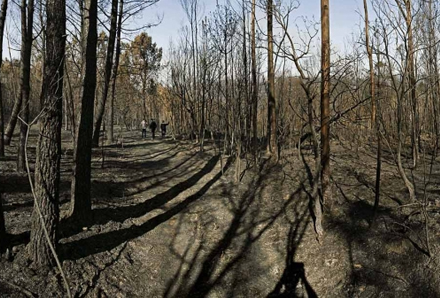 Der er foreløbig nedbrændt 750 hektar skov, oplyser myndighederne. De omkringliggende kommuner vurderer dog, at der er tale om helt op mod 2.000 hektar skov, som nu er forvandlet til rygende aske.