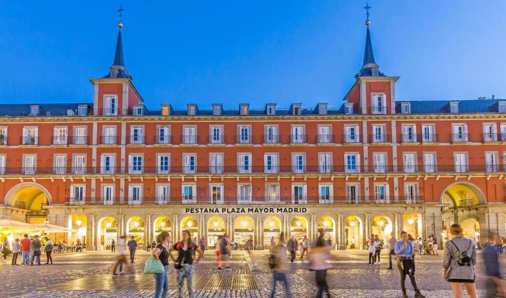 Jeg har jo studeret de hidtidige pressebilleder af tennisbanen. Jeg vil gerne have nogle billeder i fugleperspektiv. På forespørgsel har har luksushotellet Pestana Plaza Mayor Madrid, inviteret til at tage billeder oppe fra ét af de 34 værelser, som de har i de gamle facader direkte til Plaza Mayor. Spændende!