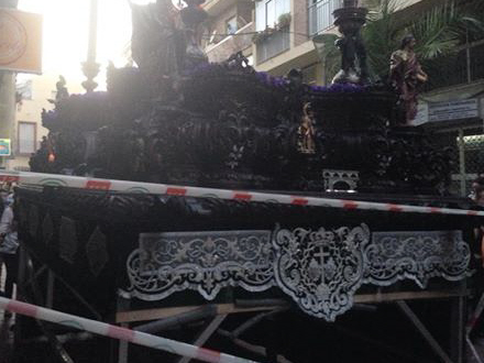 Festlighederne tog en uventet drejning, da en trone med den korsfæstede Jesus Kristus væltede under et påskeoptog langfredag. Fire personer blev kvæstet, mens en femte måtte modtage akut krisehjælp.