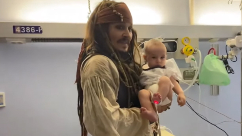 Den amerikanske skuespiller Johnny Depp har endnu en gang iført sig sit piratkostume for at besøge børn, der er indlagt på Universitetshospitalet Donostia i San Sebastián.
