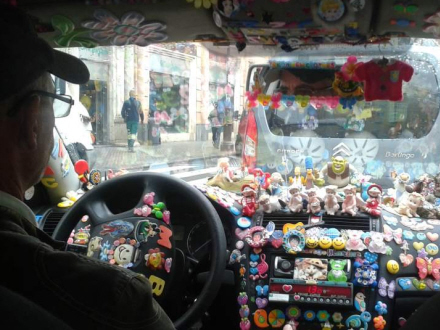 Mickey Mouse, Minnie Mouse, Hello Kitty, Svampe-Bob, Disney-prinsesser, feer, sommerfugle, hundehvalpe – alle sammen kører de rundt sammen med ham og hans kunder hver dag. Rafael Seguras taxa oser af magi og glæde, og ofte kører han endda gratis.