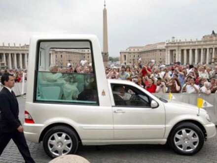 Pavens nye bil, der er bragt til Madrid fra Rom, er - ligesom den forrige – fabrikeret af Mercedes-Benz. ”Akvariet” - kabinen – er naturligvis forsynet med skudsikkert panserglas.